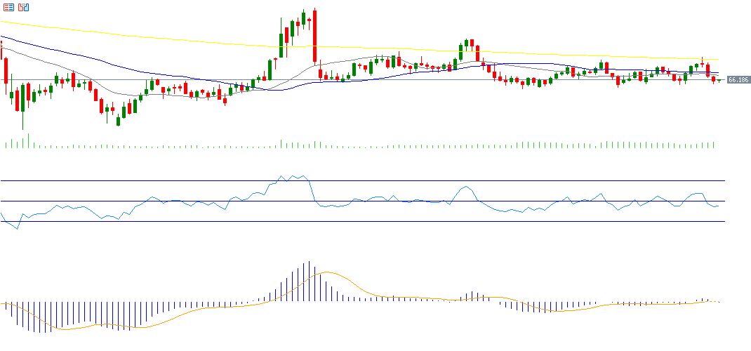 ومن الناحية الفنية، يتداول سعر النفط الخام حاليًا دون مستوى الدعم الأساسي، وهو المتوسط المتحرك لـ50 يومًا (باللون الأزرق)، والذي يقف عند 67.67 دولارًا، كما يحوم فوق مستوى الدعم الثاني، وهو المتوسط المتحرك لـ20 يومًا (باللون الرمادي)، والذي يقف عند 67.23 دولارًا. ويكمن التحدي القادم في ما إذا كانت أسعار النفط ستصل إلى مستوى الدعم القوي عند 65 دولارًا.