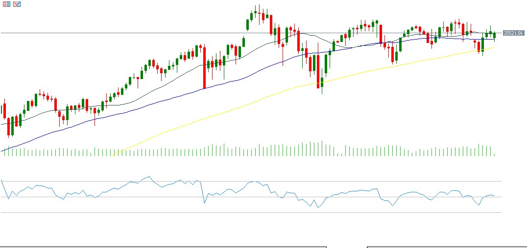 كما جاءت نتائج معظم الشركات الأميركية للربع الأخير من العام الماضي إيجابية، لا سيما في القطاع المصرفي، مع ترقّب صدور نتائج الشركات التكنولوجية الكبرى خلال هذا الأسبوع. ويستمر أيضًا الزخم الإيجابي لأسهم شركات التكنولوجيا المرتبطة بالذكاء الاصطناعي، مدعومًا بالطلب القوي والتدفقات الاستثمارية الكبيرة نحو البنية التحتية لهذا القطاع. ويُسجّل مؤشر القوة النسبية (RSI) حاليًا نحو 53 نقطة، ما يشير إلى زخم صعودي للمؤشر.