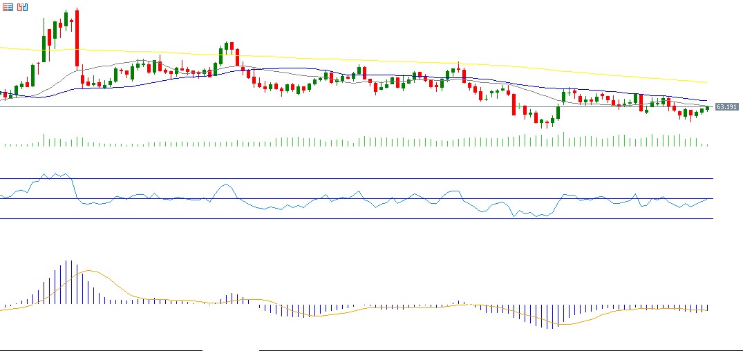 تراجعت أسعار النفط الخام للشهر الرابع على التوالي، حيث سجّلت مستوى 60.96 دولار يوم الثلاثاء الماضي، وهو أدنى مستوى منذ 21 أكتوبر 2025، لتغلق عند مستوى 62.31 دولارًا يوم الجمعة. وقد انخفضت الأسعار بنحو 17% منذ مطلع العام وحتى اليوم. وتشمل أبرز العوامل الضاغطة على الأسعار: إمكانية التوصل إلى وقف للحرب الروسية–الأوكرانية، ووفرة المعروض النفطي من خارج دول أوبك+، وضعف البيانات الاقتصادية لدى كبار مستوردي النفط مثل الصين، مما ضغط على الطلب العالمي، بالإضافة إلى ارتفاع شحنات النفط الإيراني المتراكمة في البحر إلى أعلى مستوى منذ عام 2023، وارتفاع مخزون النفط الخام الأميركي بمقدار 2.774 مليون برميل الأسبوع الماضي. ويسجل مؤشر القوة النسبية (RSI) حاليًا 44 نقطة، مما يشير إلى الزخم الهبوطي للنفط. كما يظهر مؤشر MACD تقاطعًا هبوطيًا بين خط MACD وخط الإشارة، مما يعزز احتمالات استمرار الضغوط البيعية.