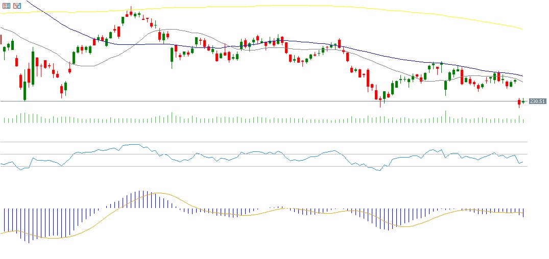 تراجع سهم Salesforce بنحو 31% منذ مطلع هذا العام حتى اليوم. وتترقب الأسواق يوم الأربعاء 3 ديسمبر 2025 صدور النتائج المالية للشركة، حيث تتوقع الأسواق أن تسجل ربحًا قدره 2.86 دولار للسهم الواحد، بعد أن سجلت 2.41 دولار في القراءة السابقة. أما الإيرادات، فتتوقع الأسواق أن تصل إلى 10.27 مليارات دولار، بعد أن سجلت 9.44 مليارات دولار سابقًا. ويسجل مؤشر القوة النسبية (RSI) حاليًا 42 نقطة، ما يشير إلى الزخم السلبي للسهم. كما يُظهر مؤشر MACD تقاطعًا هبوطيًا بين خط MACD (باللون الأزرق) وخط الإشارة (Signal Line) (باللون البرتقالي)، مما يعطي زخمًا سلبيًا للسهم.