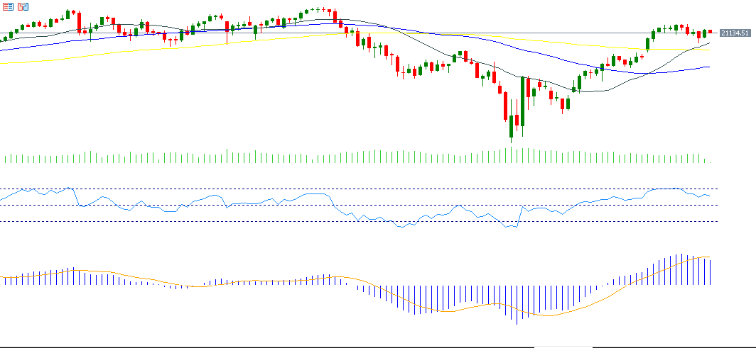 أما التحدي الفني الأكبر، فيكمن في اختراق مستوى المقاومة عند 21,483 نقطة.