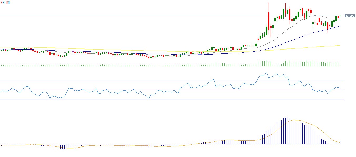 ومن الناحية الفنية لمؤشر Nasdaq 100، يسجل مؤشر القوة النسبية حاليًا مستوى 85 نقطة، أي في منطقة التشبع الشرائي، ما يدل على الزخم الإيجابي للمؤشر، إلى جانب ظهور تقاطع صعودي بين خط الماكد وخط الإشارة، وهو ما يعزز احتمالات استمرار هذا الزخم الإيجابي. إضافة إلى ذلك، شهدنا تقاطعًا صعوديًا أو تقاطعًا ذهبيًا بين المتوسط المتحرك لـ20 يومًا والمتوسط المتحرك لـ50 يومًا، ما قد يشير إلى مزيد من الإيجابية.