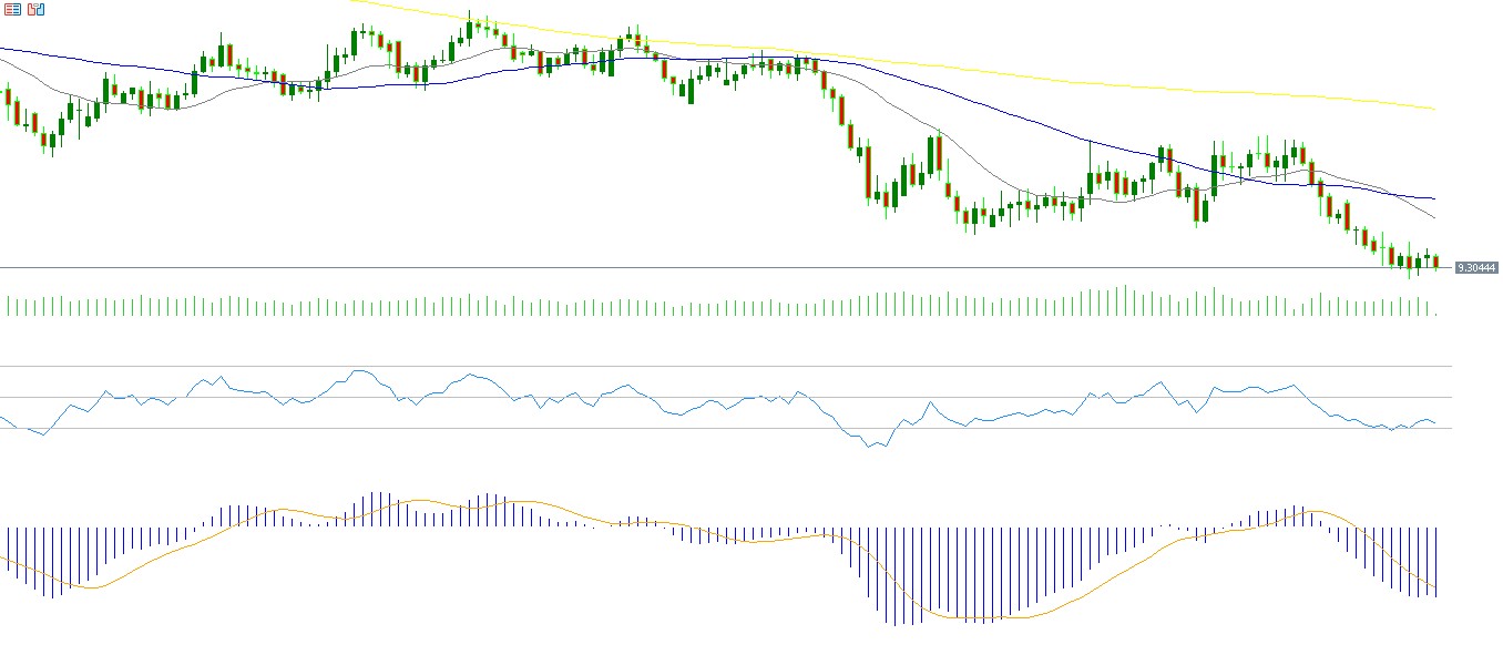 ويسجل مؤشر القوة النسبية (RSI) حاليًا 34 نقطة، ما يشير إلى زخم هبوطي للزوج. كما يُظهر مؤشر MACD تقاطعًا هبوطيًا بين خط الماكد وخط الإشارة، ما يدعم استمرار الزخم السلبي للزوج.