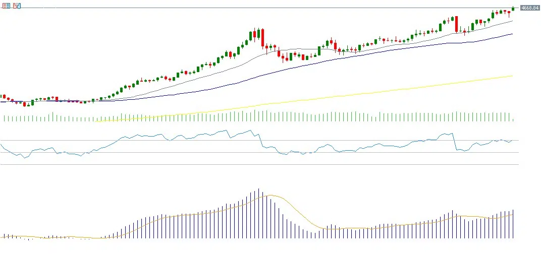 The UK’s FTSE 100 index continued its rally for the seventh consecutive session, reaching 10,256 points on Friday—its highest level on record. The index is up around 3% year-to-date, outperforming major U.S. equity indices such as the S&P 500 and Nasdaq 100. This strong performance reflects several factors, most notably better-than-expected UK economic data. Monthly GDP grew by 0.3%, exceeding expectations of 0.1% and improving on the previous contraction of -0.1%. Industrial production also rose by 1.1% month-on-month, well above forecasts of 0.2%. Additionally, the UK banking sector has shown strong momentum, led by HSBC, whose shares reached a new record high last week. Expectations of continued accommodative monetary policy or two rate cuts by the Bank of England this year have also supported the index. The RSI stands at 77, indicating overbought conditions and strong bullish momentum, while a bullish MACD crossover reinforces the positive outlook.