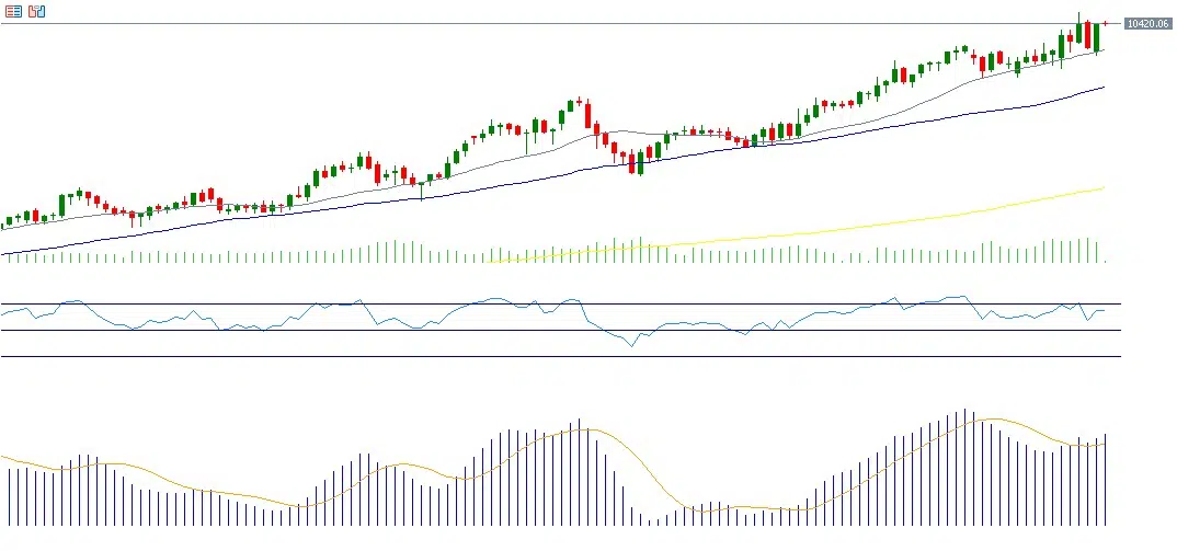 The UK’s FTSE 100 continues to advance, reaching 10,482 points on Wednesday, February 4, 2026, its highest level on record. The index is up nearly 5% year to date, outperforming other European benchmarks such as France’s CAC 40, Germany’s DAX, and the STOXX 600. This strong performance is largely driven by the Bank of England’s decision on February 5 to keep interest rates unchanged at 3.75%. Notably, four out of nine MPC members voted in favor of a rate cut, compared to expectations that only two would do so. This split has reinforced expectations of rate cuts later in the year, providing bullish support to UK equities. The RSI stands at 63, and the MACD shows a bullish crossover, confirming positive momentum for the index.