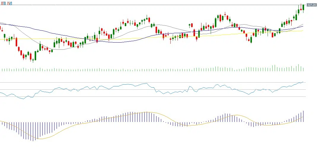 McDonald’s shares are up around 7% year to date. Markets are awaiting the company’s earnings release on Wednesday, February 11, 2026, with expectations for earnings of USD 3.03 per share, compared to USD 2.83 in the previous quarter. Revenues are expected to reach USD 6.80 billion, up from USD 6.39 billion previously. The RSI is currently at 73, placing the stock in overbought territory and signaling strong positive momentum. The MACD also shows a bullish crossover, reinforcing the positive outlook for the stock.