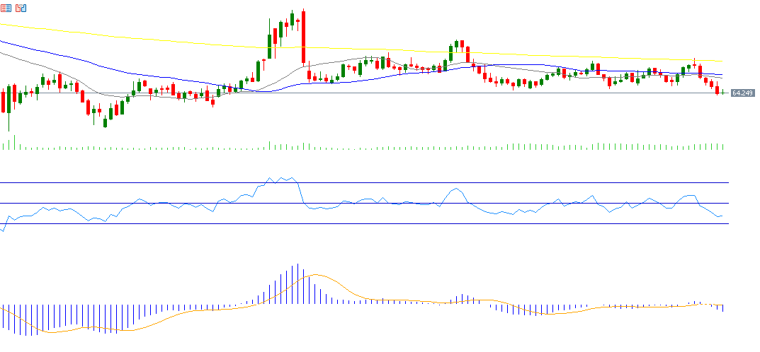 Crude oil prices declined by 6.45% last week, closing at $64 on Friday—the lowest since June 2, 2025—down about 9% from the September 26 peak of $70. Key factors weighing on oil prices include US President Donald Trump’s announcement of a prospective Gaza ceasefire, reducing geopolitical risk premiums; OPEC+’s decision on October 5 to increase production by 137,000 barrels per day in November; abundant supply outside OPEC; and weakening economic data from major oil importers like China, dampening global demand. The RSI currently reads 37, indicating negative momentum, while the MACD shows a bearish crossover, confirming downward pressure on oil prices.