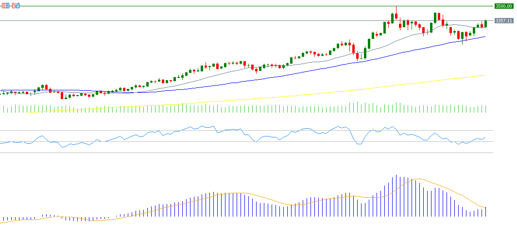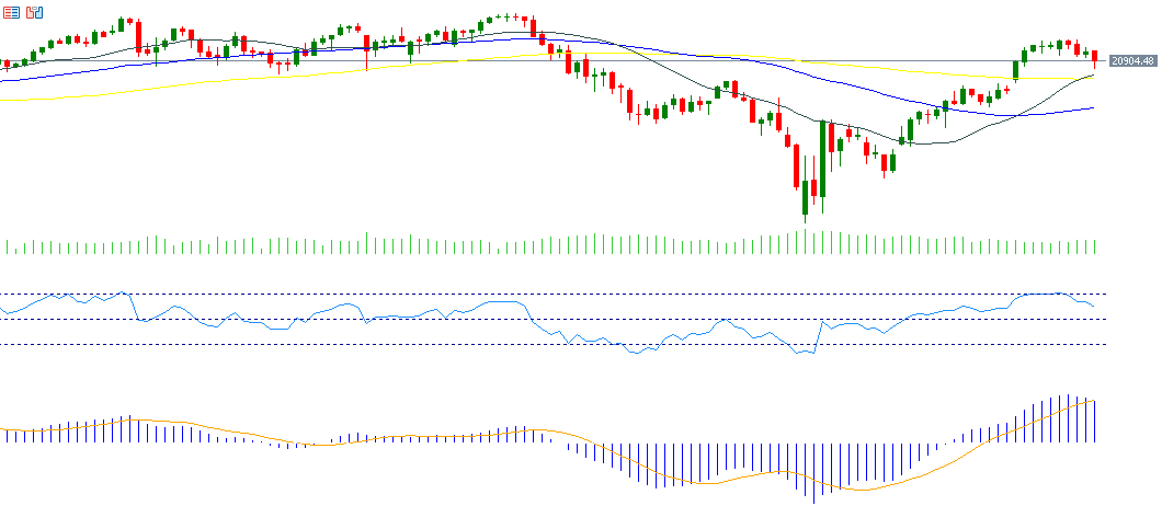 The Nasdaq 100 index dropped approximately 2.39% last week, primarily due to rising yields on long-term U.S. Treasury bonds and escalating trade tensions. The index is down about 0.46% year-to-date. The RSI currently reads 60, indicating bullish momentum, while the MACD shows a bullish crossover with the Signal Line, supporting a continued positive outlook for the index.