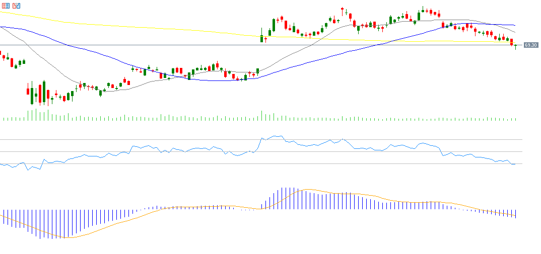 Nike’s share price has declined approximately 8 % year-to-date. Markets are closely watching Nike’s upcoming earnings report (expected on Tuesday, September 30, 2025). Analysts forecast EPS of $0.27, down from $0.70 in the previous period, and revenue of $10.96 billion, versus $11.60 billion previously. The RSI is around 30, placing the stock in oversold territory, and the MACD shows a bearish crossover, both of which suggest downward pressure.