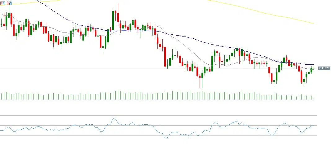 The USD/CNH exchange rate recorded 7.1205 today, marking its fifth consecutive daily rise. Despite this upward movement, the pair has been trading sideways for the past two months within a horizontal range between 7.1000 and 7.1500. The pair remains roughly 3% year-to-date.