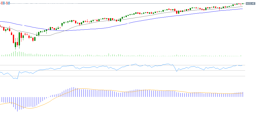 - A bullish crossover is visible between the MACD line (blue) and the signal line (orange), supporting the continuation of positive momentum