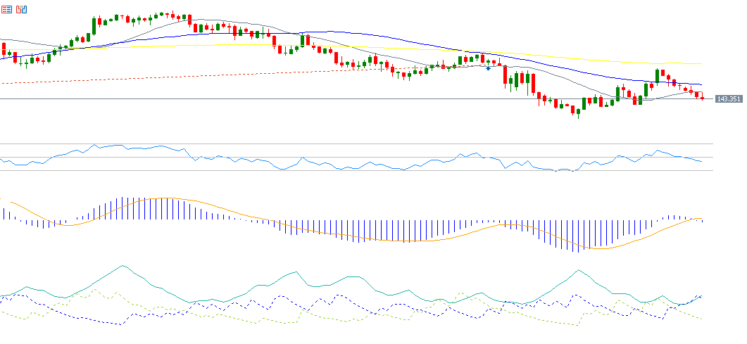 The USD/JPY pair recorded a low of 143.14 today — its lowest level in two weeks — and is currently trading near the 143.50 mark. The pair has declined by around 9% year-to-date. Negative momentum appears to be dominating in the near term, driven by both fundamental and technical factors.