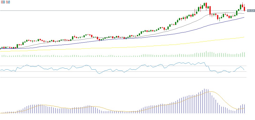 Silver prices rose by about 4.57% last week, reaching 54.40 dollars on Thursday, 13 November 2025, the highest level since 17 October 2025 at 54.48 dollars. Prices are also up roughly 75% since the beginning of the year. Despite recent fluctuations, medium- and long-term expectations remain bullish due to strong industrial demand, increased usage in artificial-intelligence-related applications, and the positive correlation with gold. However, silver continues to face volatility driven by uncertainty over the future path of US interest rates, especially ahead of the Federal Reserve meeting on 10 December. Markets currently expect a 50% chance of a rate hold, down from more than 90% expectations of a rate cut just a month ago, which adds pressure on silver as a non-yielding asset. The RSI currently stands at 55, indicating positive momentum, while the MACD shows a bullish crossover, supporting the continuation of upward momentum.