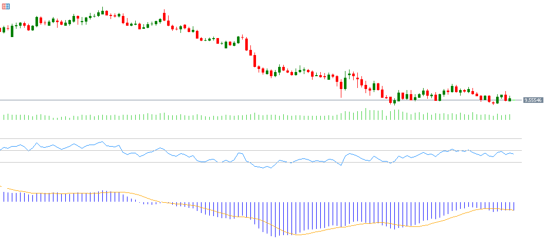 Gold prices saw a very slight increase of 0.02% over the past month. Uncertainty continues to dominate the yellow metal’s performance due to ongoing trade and geopolitical tensions, along with U.S. fiscal and monetary policies. The RSI currently sits at 51, suggesting continued upward momentum. However, the MACD shows a bearish crossover, supporting a downside trend in prices.