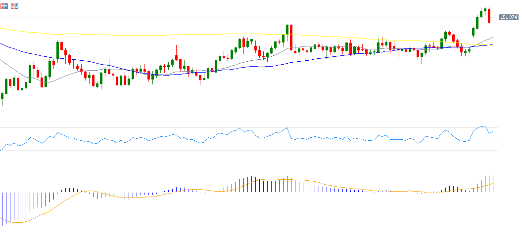 The USD/JPY pair rose on Friday, reaching 153.27—the highest since February 13, 2025—before pulling back to close at 151.12. Despite this, the pair remains down about 4% year-to-date. The yen’s decline is largely attributed to the election of Sanae Takaichi as leader of the Liberal Democratic Party, known for supporting accommodative monetary and fiscal policies, including high government spending and easy borrowing to stimulate the sluggish economy. This complicates the Bank of Japan’s task of controlling inflation without raising interest rates. The Relative Strength Index (RSI) currently stands at 60, indicating positive momentum for the USD/JPY pair. Additionally, the MACD shows a bullish crossover between the blue line and the orange signal line, supporting the continuation of upward momentum.