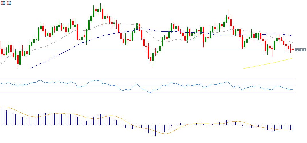 The GBP/USD pair recorded a level of 1.3287 on Friday, October 24, its lowest since October 14, 2025. Despite this, the pair remains up about 6% year-to-date. The UK’s annual Consumer Price Index (CPI) for September showed growth of 3.8%, below expectations of 4.0%. The core CPI, which excludes food and energy, rose by 3.5%, also below forecasts (3.7%) and the previous reading (3.6%). This decline in inflation supports expectations that the Bank of England may move toward cutting interest rates, which weighed on the British pound. The Relative Strength Index (RSI) currently stands around 40, indicating bearish momentum for the GBP/USD pair. Additionally, a bearish crossover between the MACD line and the signal line further reinforces the likelihood of continued downward momentum.
