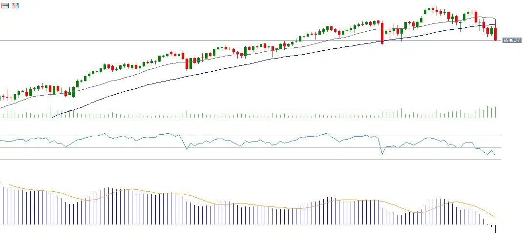 From a technical perspective, the S&P 500 is trading below the 20-day moving average at 6,773 points and below the 50-day moving average at 6,711 points. The next key question is whether the index will test its strategic support at the 200-day moving average near 6,160 points. The Relative Strength Index (RSI) stands at 35, signaling bearish momentum. Additionally, a downward crossover between the MACD line and the signal line within the negative zone confirms ongoing negative momentum.