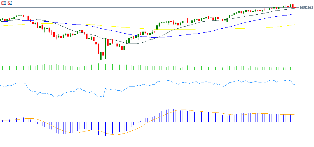 Similarly, the Nasdaq 100 has climbed about 43%, rising from a low of 16,542 points on April 7 to yesterday’s high of 23,589 points, clearly entering a strong bullish phase.
