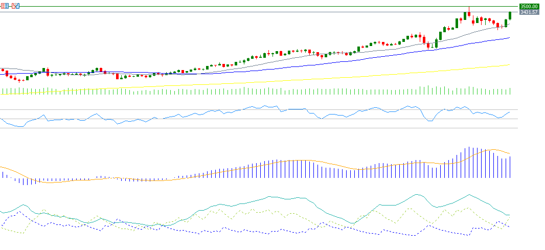 There is key support at the 20-day moving average near $3,277. If this level is broken, prices could drop toward $3,105, the 50-day moving average. On the upside, the major challenge remains retesting and breaking above the $3,500 level.
