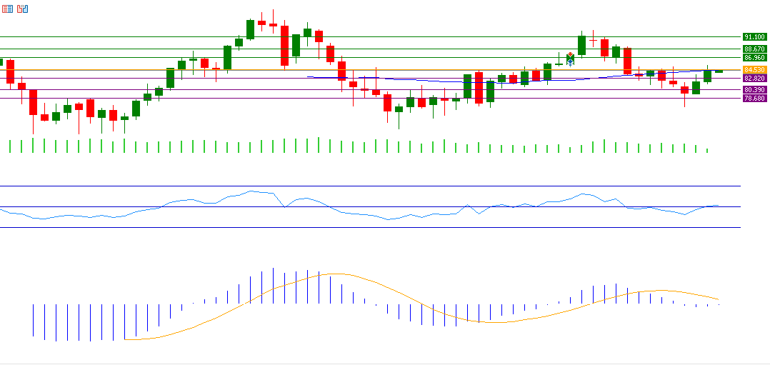 If the pivot point of 84.53 for crude oil is broken, there is a possibility that it will target the support levels of 82.82, 80.39 and 78.68. If it exceeds the pivot point, it is likely to target the resistance levels 86.96, 88.67, and 91.10.