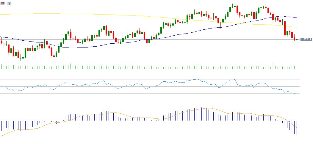 • The Relative Strength Index (RSI) is currently at 29, indicating oversold conditions and reflecting continued bearish momentum for the USD/CAD pair.
