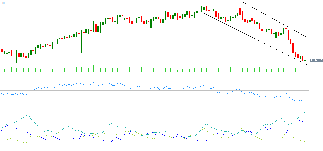 The Positive Directional Index (DMI+) is around 9, while the Negative Directional Index (DMI-) is approximately 42. The significant gap between these indicators suggests strong selling pressure on the U.S. dollar against the Swedish krona. Most notably, the Average Directional Index (ADX) is around 36, highlighting the strength of the bearish trend momentum.