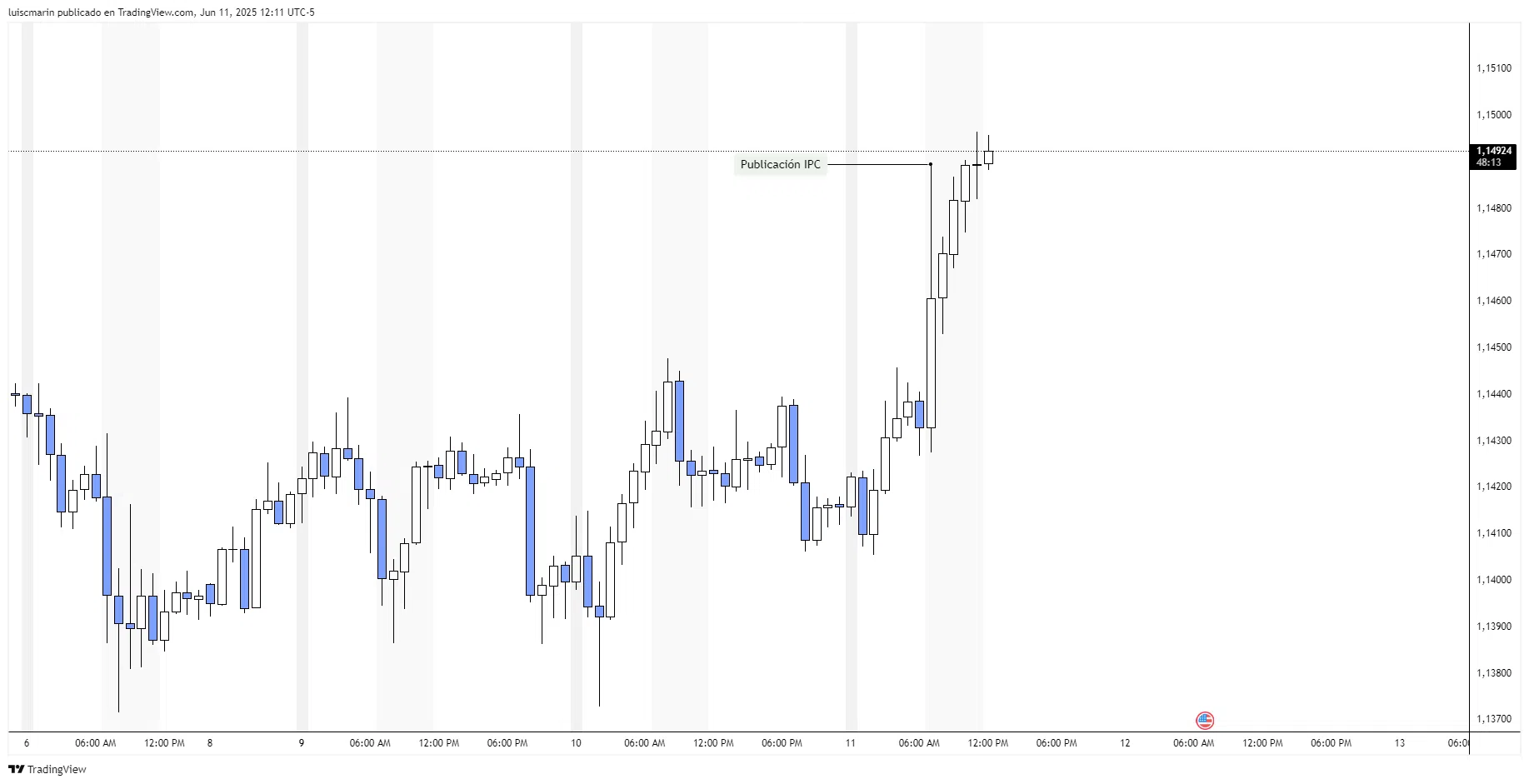 Con un IPC inferior a lo esperado, el dólar estadounidense (USD) experimentó una depreciación frente a las principales divisas. Una inflación más débil aumenta las expectativas de que la Reserva Federal pueda considerar recortes de tasas, lo que reduce el atractivo del dólar para inversores que buscan rendimientos. Este escenario impulsa flujos de capital hacia otras monedas o activos de mayor riesgo.