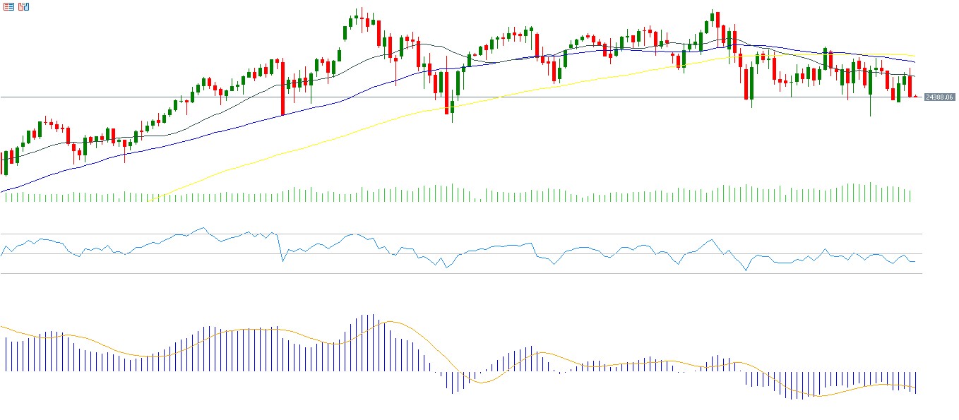 • The index closed at 24,425 points yesterday, down 3% since the beginning of the year.