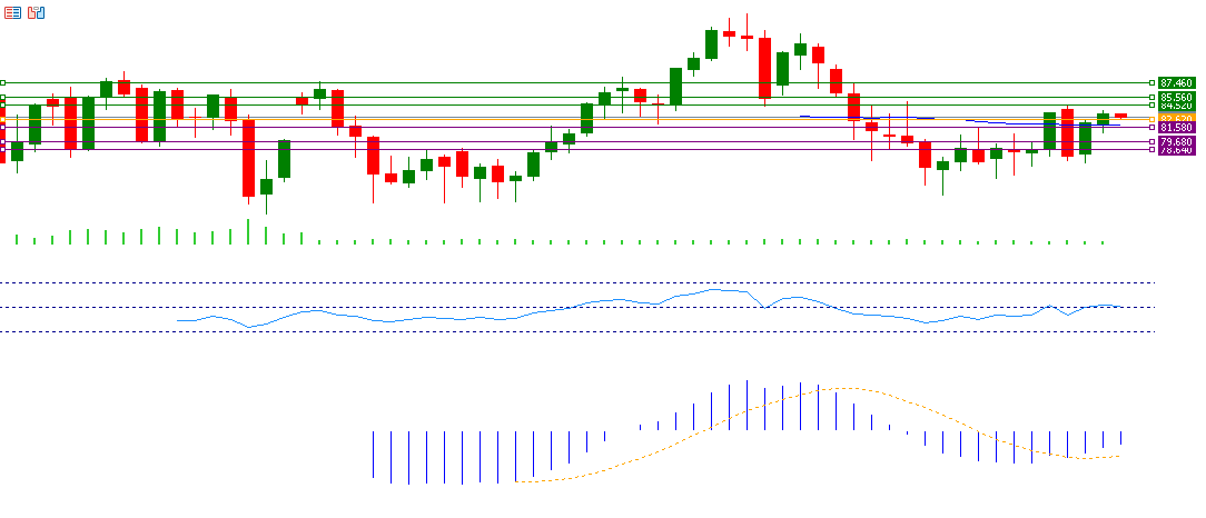 If the pivot point of 82.62 for crude oil is broken, there is a possibility that it will target the support levels of 81.58, 79.68 and 78.64. If it exceeds the pivot point, it is likely to target the resistance levels 84.52, 85.56, and 87.46.