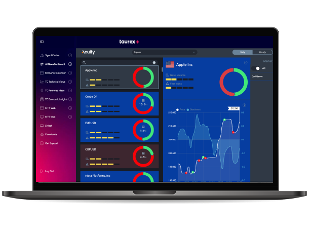 Designed to support informed decision-making, Taurex+ is your all-access pass to premium tools like Acuity, Swiset, Trading Central signals, sentiment analysis, and market screeners.