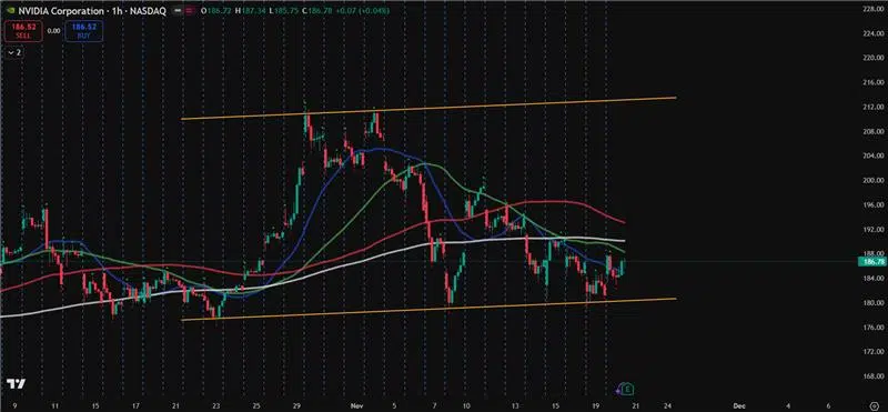 การวิเคราะห์ทางเทคนิคในหลาย Time Frame แสดงให้เห็นภาพที่น่าสนใจของการเคลื่อนไหวราคา Nvidia โดยราคาปัจจุบันอยู่ที่ระดับ 186.78 ดอลลาร์ ซึ่งกำลังอยู่ในช่วงการปรับฐานหลังจากสร้างจุดสูงสุดที่ 211.03 ดอลลาร์เมื่อวันที่ 29 ตุลาคม 2025 โดยมีรายละเอียดในแต่ละ Time Frame ดังนี้