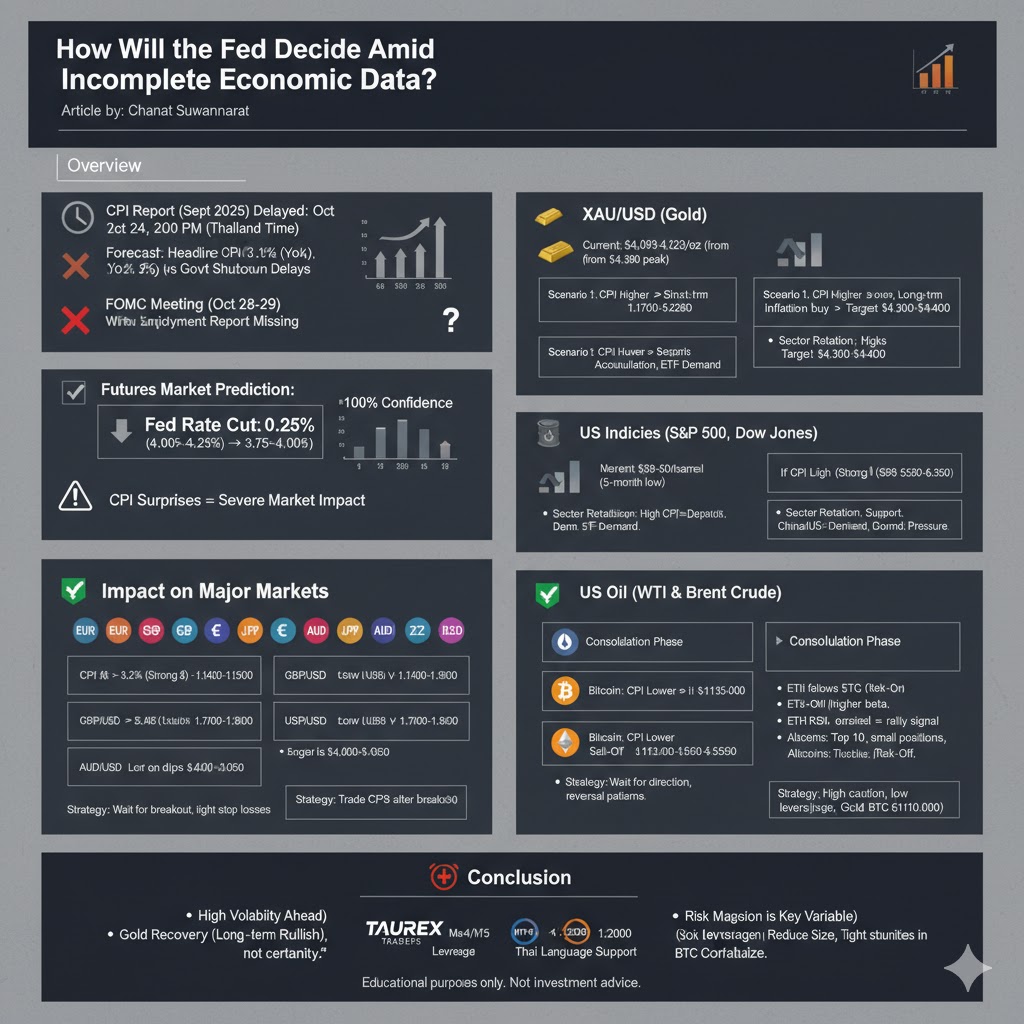 ประเด็นที่สำคัญยิ่งขึ้นคือ Fed กำลังเผชิญกับสถานการณ์ที่ไม่เคยเกิดขึ้นมาก่อน คือ ต้องประชุม FOMC วันที่ 28-29 ตุลาคม โดยปราศจากข้อมูลเศรษฐกิจที่สำคัญ โดยเฉพาะรายงานการจ้างงานเดือนกันยายนที่ยังไม่ถูกเผยแพร่ การตัดสินใจนโยบายการเงินท่ามกลางความมืดมิดของข้อมูลนี้อาจส่งผลกระทบอย่างรุนแรงต่อทุกตลาด